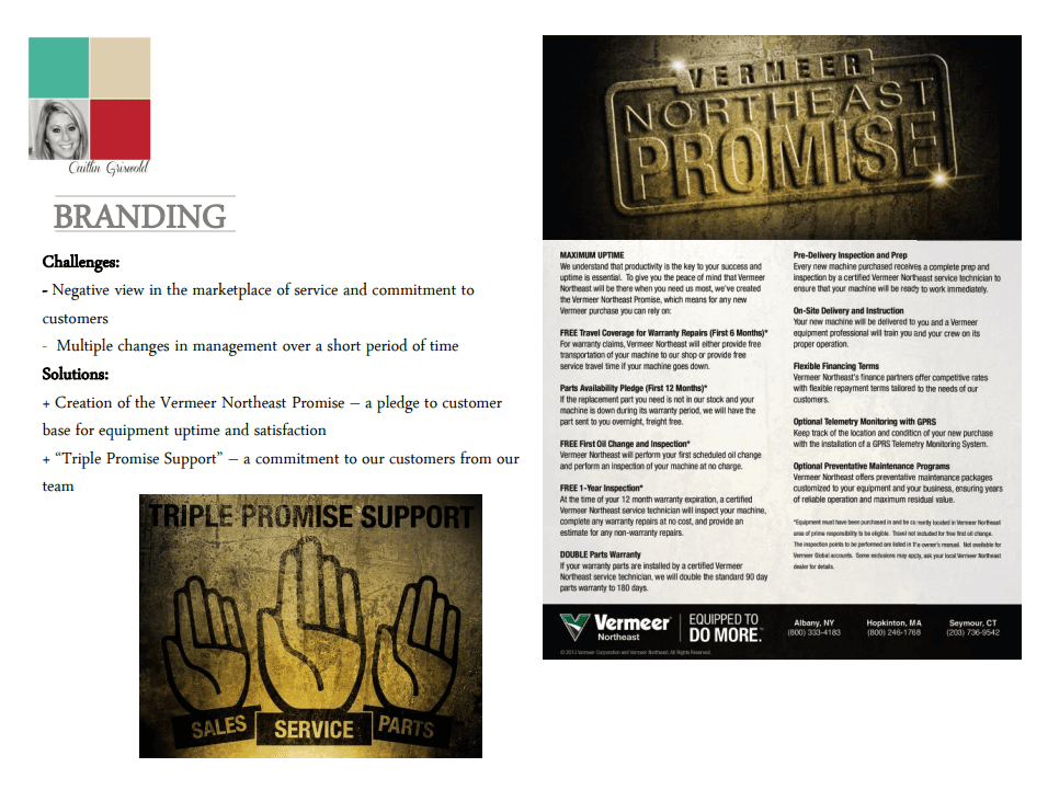 Brand Refresh: Developed the Vermeer Northeast Promise — a pledge of reliability and service excellence — and introduced the Triple Promise Support framework as part of a unified brand message.